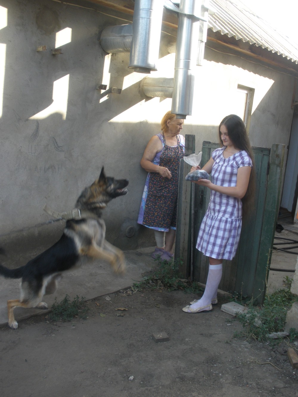 Папа при нашем монстрике погладил соседскую собачку...
